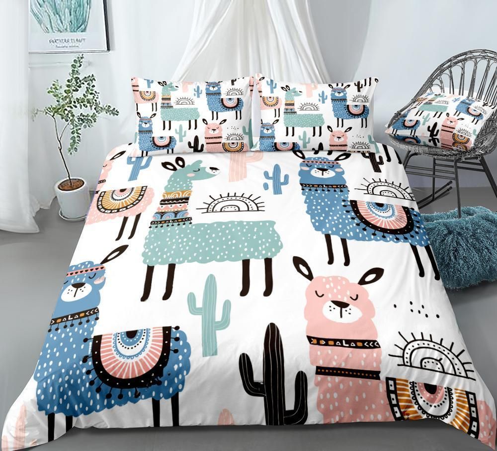 Cartoon Alpaca Duvet Cover Set Colorful Cactus Bedding Kids Boys Girls Animal Quilt Cover Queen Bed Set King Dropship 1012 From Bailixi09 85 88 Dhgate Com