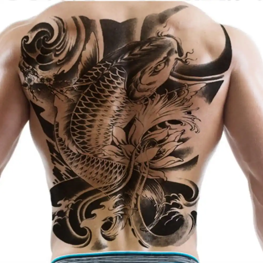 Big Large Full Back Chest Tattoo Large Tattoo Stickers Fish Wolf Tiger Dragon Waterproof Temporary Flash Tattoos Cool Men Women Temporary Tattoos Aliexpress