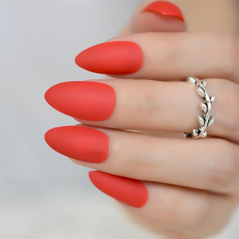 Essentially the muted finish gives red nail polish which is typically considered to be timeless an added edge. Stiletto nails are a kind of manicure red matte stiletto nails with the addition of false nails on the tips. MISUD 3Boxes Colorful Fake Nails Matte Stiletto Sharp Press-on Full Cover Artificial Nails Pointed Art Nail Tips for Women and Girls Black Green Red 1699.