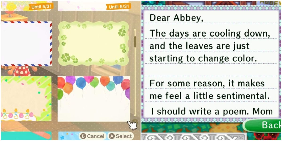 The following is a list of letters from Mom and sometimes Dad organized by game. Here youll find out how the mail system works in Animal Crossing New Horizons. New Leaf New Horizons has players manage a little community taking care of Residents running.