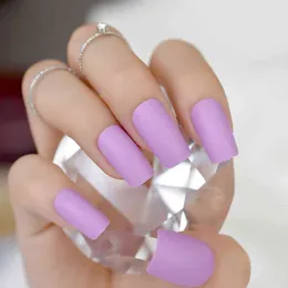 Amazon Com Coolnail Soft Pink Purple Matte False Nails Light Lilac Color Frosted Women Fake Nail Square Top Finish Designs Finger Nail Art Tips Beauty
