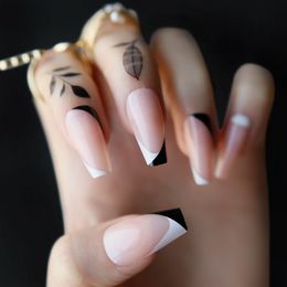 Ballerina Nail Art Tips Beige Nude Black French False Coffin Nails Art Tips Flat Shape Full Cover Manicure Press On Fake Nail False Nails Aliexpress