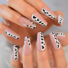 Cow Print False Nails Matte Black White Acrylic Press On Nails Etsy
