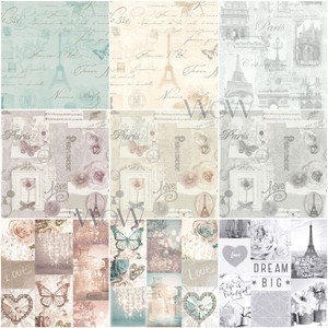 Paris Postcard Eiffel Tower Wallpaper Metallic Pink Silver Grey Duck Egg Ebay