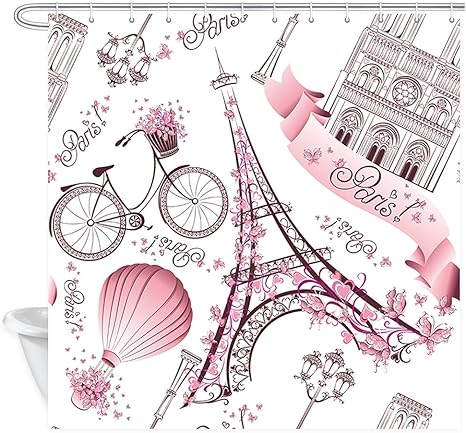 Amazon Com Jawo Paris Wallpaper Shower Curtain Modern Pink Paris Eiffel Tower Notre Dame De Paris Polyester Fabric Bathroom Bath Curtain Liner Set With Hooks 69x70inches Home Kitchen