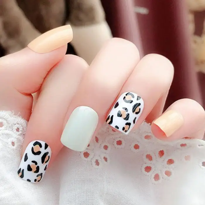 24pcs Box Leopard Print Acrylic Press On Nails Peach Tea Boutique Us