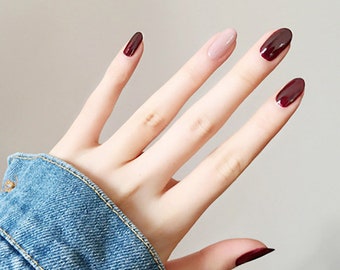 Bephora Handmade Drak Red Shiny Surface Pure Color Grid Etsy Pink French Nails Fake Nails French Nails