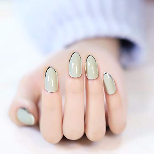 Amazon Com 24pcs Fake Nails Light Grey Color Oval Stiletto Pointy Full False Nail Tips Almond Shape Acrylic Gel Claw Nails Beauty