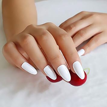 24pcs Full Cover Nail Tips Pure Color Stiletto Fake Nails 8 Colors Sharp Ending Nail Tips Acrylic False Nail Art Salon Tips White Beauty Amazon Com