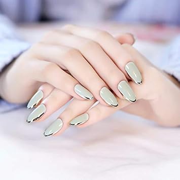 Amazon Com 24pcs Oval Full Acrylic False Nails Light Grey Fake Nails Art Salon Stiletto Pointed Sliver Side Faux Ongles In Acrylic Box Beauty
