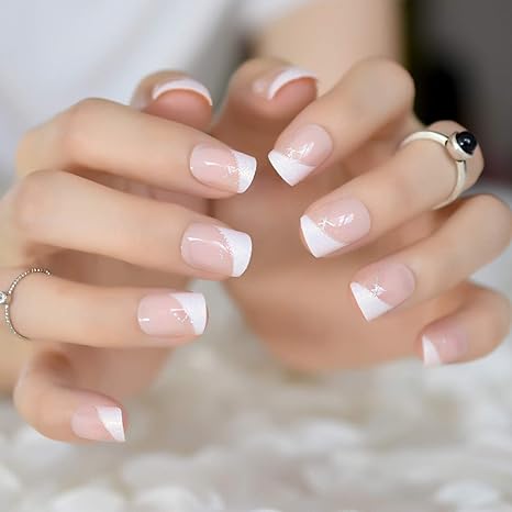 Nude White French Fake Nails Squoval Square Uv Gel False Press On Nail Ninthavenue India