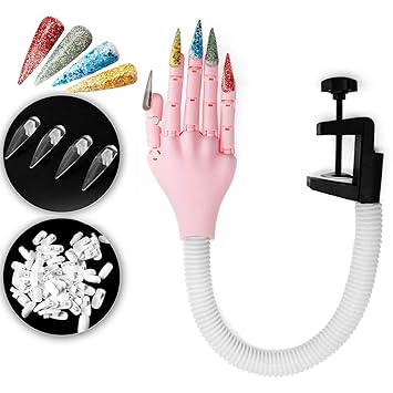 Amazon Com Flexible Nail Practice Hand Fingers With 100pcs Stiletto Nails And 100pcs Normal Nails For Acrylic Nails Professional Manicure Fake Nail Hand For Nail Technician Beginner Use Beauty