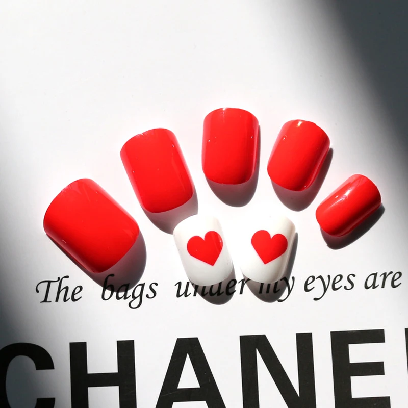 24 Tips Red Heart False Nails Short Full Cover Fake Nails Adhesive Press On Nails Valentine S Day Designs Manicure Beauty Tools False Nails Aliexpress